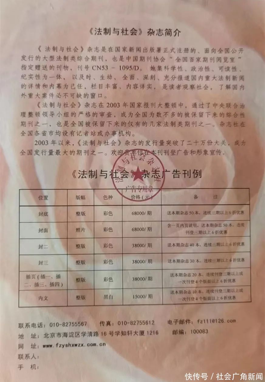 近日,网帖曝出原由云南省司法厅主管的法制与社会杂志社,将自己成立的福建办事处承包给他人从事维权曝光、与第三方合办专栏、专刊等违规活动。